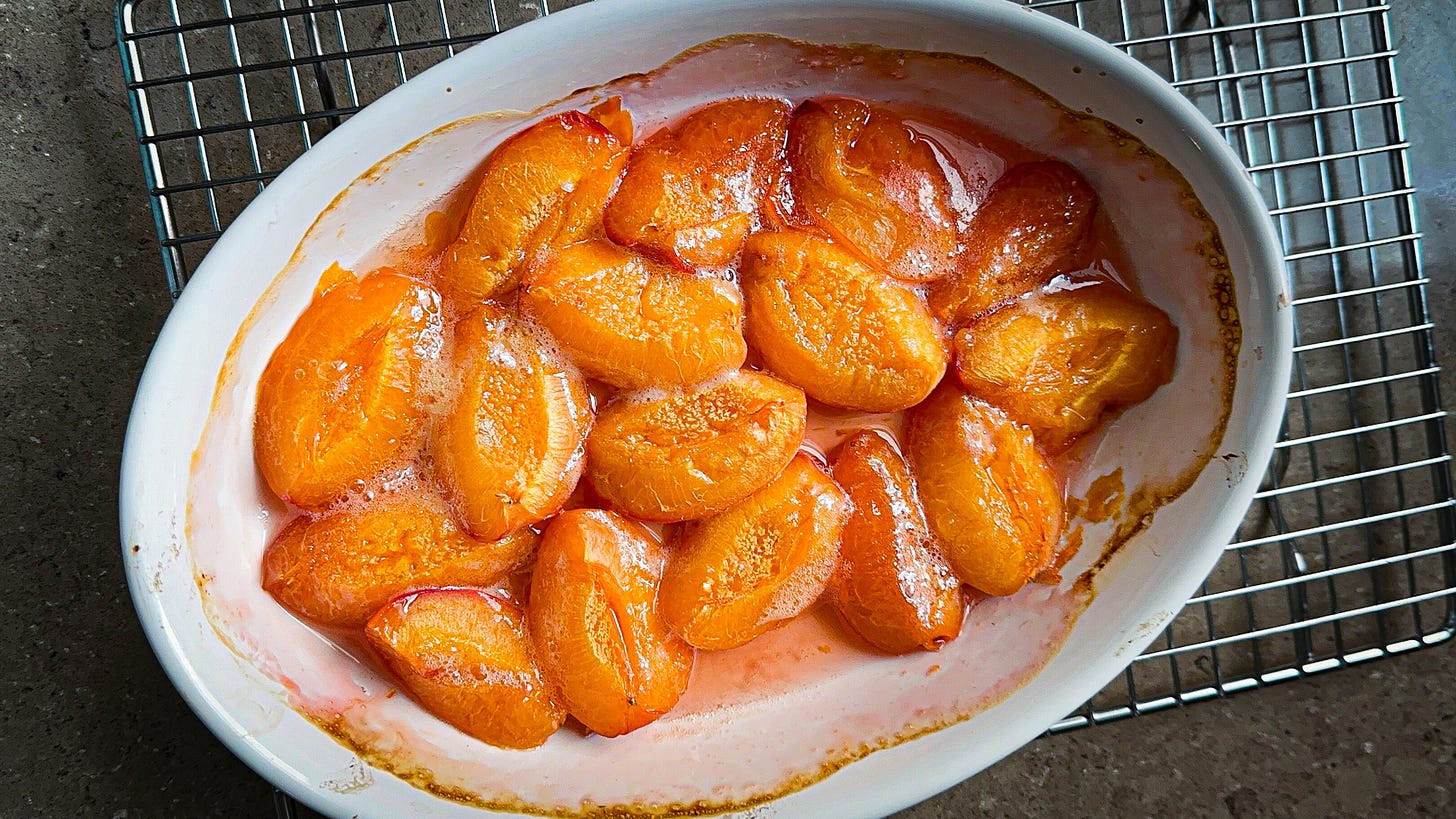 Bake until bubbling and the apricots soften, but don't totally turn to mush, about 20 minutes. Remove from the oven and set aside to cool. (Don't stir them too vigourously or you might mush them up.) You can also make this a day ahead of time and store it in the refrigerator.