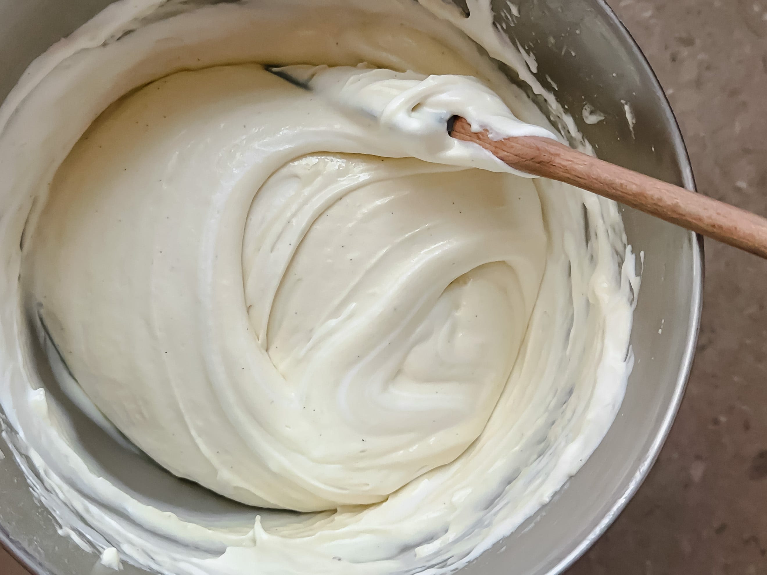 Add the sugar mixture, cream cheese, and salt to the bowl of a stand mixer. Mix on low speed for about 1 minute to combine. Turn the speed to medium and whisk until smooth, about 1-2 minutes. With the mixer on medium-low, stream in the cold heavy cream. After the cream is all added, turn the mixer to medium speed and whip until you get your desired consistency: soft peaks for casual swoops, and stiff peaks for piping. Don’t walk away from the mixer while whipping cream. That’s a general rule.